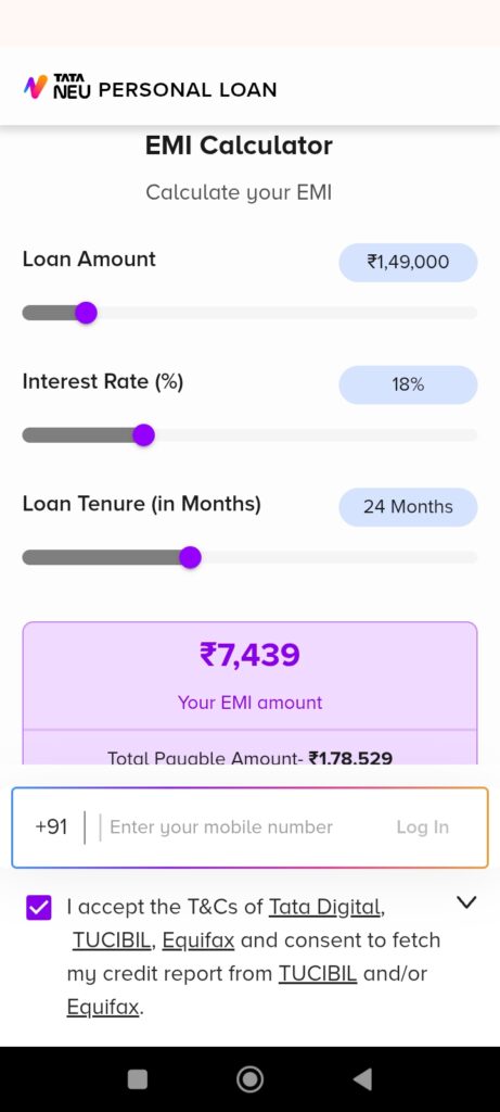 ಕನಿಷ್ಠ ಲೋನ್ ಮೊತ್ತ: ₹3,000ಗರಿಷ್ಠ ಲೋನ್ ಮೊತ್ತ: ₹10,00,000 (ಅರ್ಹತೆಯ ಆಧಾರದ ಮೇಲೆ)ನಿಮ್ಮ EMI ಮೊತ್ತವು ನಿಮ್ಮ ಮಾಸಿಕ ಆದಾಯದ 30% ಮೀರಬಾರದು.